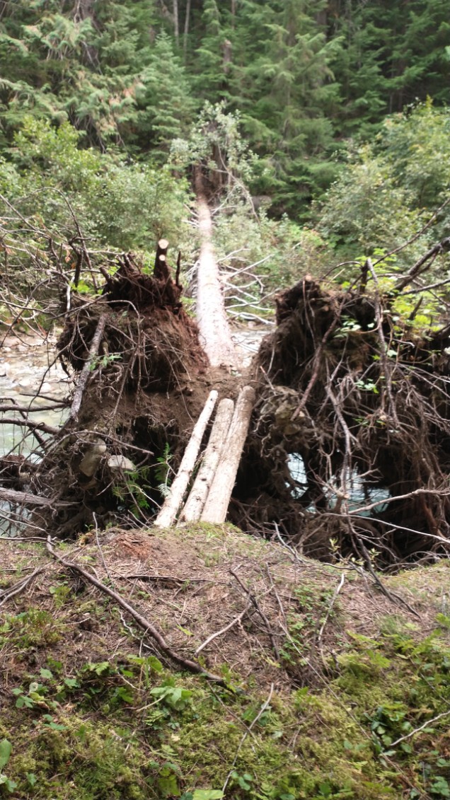 They made a trail and a crossing upstream on a big spruce across the creek, but it still needs some improvement.